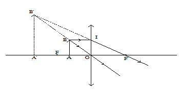 Cho vật sáng AB cao 1cm đặt vuông góc với trục chính của 1 thấu kính hội tụ có tiêu cự 12 cm. Điểm A nằm trên trục chính cách thấu kính 8 cm.
