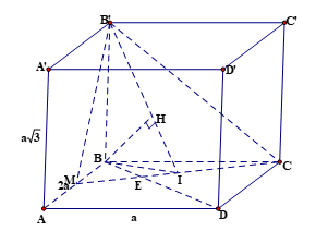 Cho hình hộp chữ nhật \(ABCD.{A}'{B}'{C}'{D}'\) có \(AB=2a\), \(AD=a\), \(AA' = a\sqrt 3\). Gọi \(M\) là trung điểm cạnh \(AB\). Tính khoảng cách \(h\) từ điểm \(D\) đến mặt phẳng \(\left( {B}'MC \right).\)