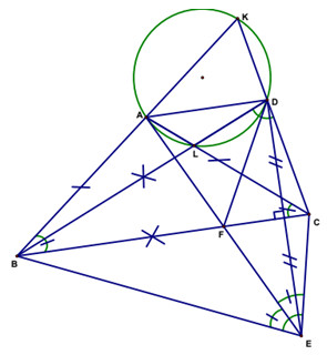 b) Đường thẳng AB cắt đường thẳng CD tại K, đường thẳng BC cắt đường thẳng AE tại F. Chứng minh rằng: FA = FD và đường thẳng FD tiếp xúc với đường tròn ngoại tiếp tam giác ADK.