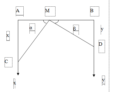 Trên mặt nước có hai nguồn kết hợp được đặt ở A và B cách nhau 14cm, dao động điều hòa cùng tần số, cùng pha, theo phương vuông góc với mặt nước. sóng truyền trên mặt nước với bước sóng 0,9cm. Điểm M nằm trên đoạn AB cách A một đoạn 6cm. Gọi Ax, By là hai nửa đường thẳng trên mặt nước ở cùng một phía so với AB và vuông góc với AB. Cho điểm C di chuyển trên Ax và điểm D di chuyển trên By sao cho MC luôn vuông góc với MD. Khi tổng diện tích của tam giác ACM và BMD có giá trị nhỏ nhất thì số điểm dao động với biên độ cực đại trên MD là