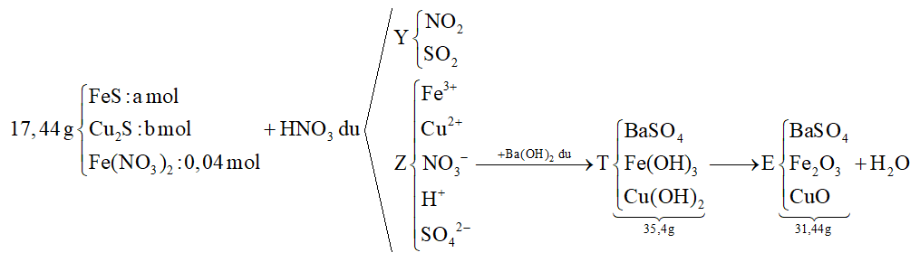 Hòa tan 17,44 gam hỗn hợp gồm FeS, Cu2S và Fe(NO3)2 (trong đó nguyên tố nitơ chiếm 6,422% khối