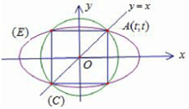 +) (E) cắt (C) tại bốn điểm tạo thành đỉnh của một hình vuông nên bốn đỉnh nằm trên hai đường phân giác thuộc góc phần tư thứ nhất và thứ hai.