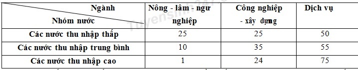 Cho bảng số liệu: Cơ cấu GDP phân theo các ngành kinh tế của các nhóm nước, năm 2010 (Đơn vi:̣