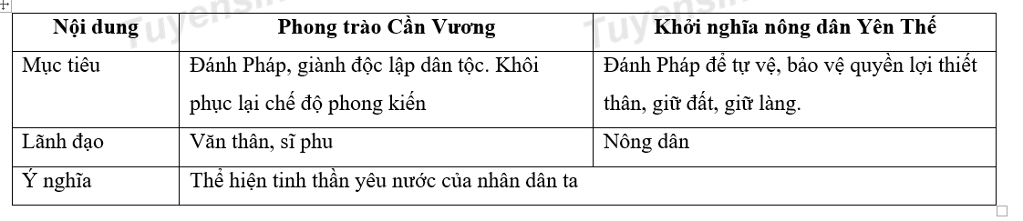 Điểm chung giữa phong trào Cần Vương và phong trào nông dân Yên Thế là