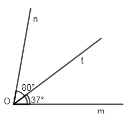 Trên cùng một nửa mặt phẳng bờ là tia Om, vẽ \(\widehat{mOt}={{37}^{0}},\widehat{\ mOn}={{80}^{0}}\).