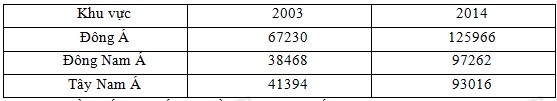 (Nguồn: Số liệu Thống kê về Việt Nam và thế giới, NXBGD Việt Nam, 2017)