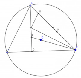 b) Chứng minh tâm (HCE) nằm trên AC vì tâm đường tròn ngoại tiếp tam giác ADC đã nằm trên AC.