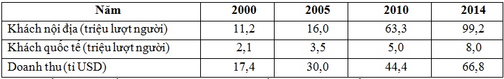 Căn cứ vào bảng số liệu, cho biết nhận xét nào sau đây đúng về tình hình phát triển ngành du lịch ở nước ta?
