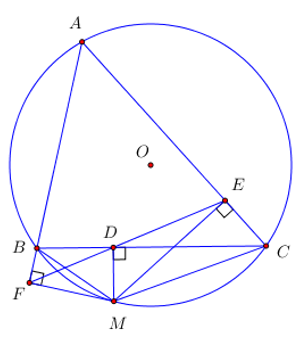 Cho tam giác ABC (AB < AC) nội tiếp đường tròn (O). M là điểm nằm trên cung BC không chứa điểm A. Gọi D, E, F lần lượt là hình chiếu của M trên BC, CA, AB. Chứng minh rằng :