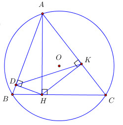 b) Gọi D và K lần lượt là hình chiếu vuông góc của H trên AB và AC. Chứng minh rằng diện tích tam giác ABC bằng 2 lần diện tích tam giác ADK.