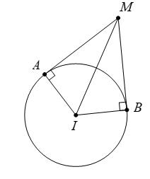 Đưa về bài toán đường tròn tiếp xúc với hai đường thẳng cắt nhau, sử dụng bài toán hình phẳng lớp 9 để tìm AB thông qua dữ kiện góc