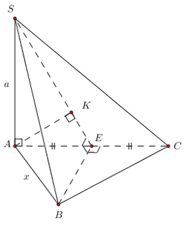 Chóp S.ABC, \(SA \bot \left( {ABC} \right),\,\,SA = a,\,\,\Delta ABC\) đều, E là trung điểm AC. \(\sin \widehat