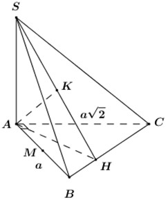 Chóp \(S.ABC\), \(SA \bot \left( {ABC} \right),\,\,\Delta ABC\) vuông ở \(A\). \(AB = a,\,\,AC = a\sqrt 2