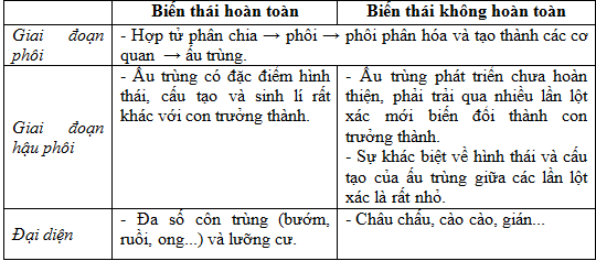 Phát triển của động vật qua biến thái hoàn toàn là kiểu phát triển mà