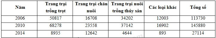 Cho bảng số liệu: SỐ LƯỢNG TRANG TRANG TRẠI CỦA CẢ NƯỚC QUA CÁC NĂM (Đơn vị: trang