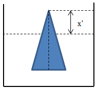 b. Bây giờ lấy vật I ra khỏi bình, rồi thả vật II vào bình, sao cho đỉnh hình nón nằm phía trên và trục đối xứng của nó có phương thẳng đứng. Hãy so sánh độ cao của đỉnh hình nón và miệng bình.