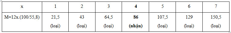 Kẻ bảng chạy giá trị của x để tìm ra M thỏa mãn => CTPT của chất