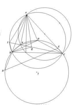 Cho tam giác ABC có 3 góc nhọn, \(AB<AC\) và nội tiếp đường tròn \(\left( O \right).\) Đường tròn ngoại tiếp tam giác BOC cắt các đường thẳng AB và AC theo thứ tự tại D và E. Trên đường tròn ngoại tiếp tam giác BOC lấy điểm P sao cho AP vuông góc với PC. Đường thẳng qua B song song với OP cắt PC tại Q. Chứng minh rằng :