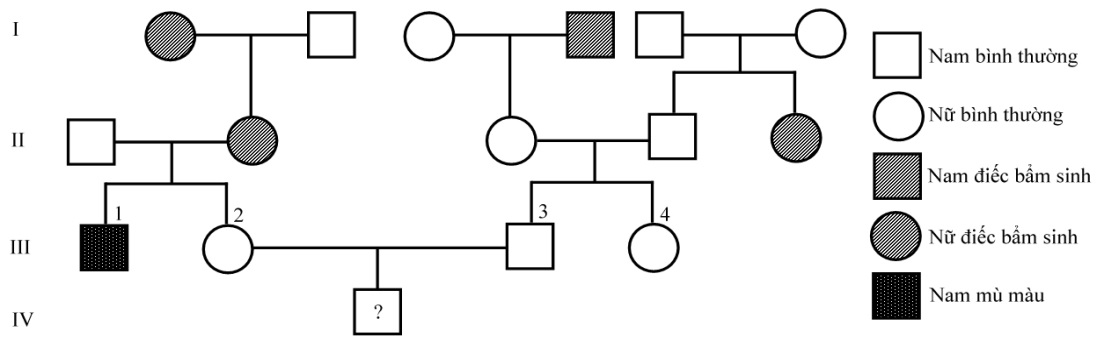 IV. Cặp vợ chồng III2 và III3 sinh ra một đứa con trai, xác suất để đứa con này chỉ mang một bệnh là 37,5%.