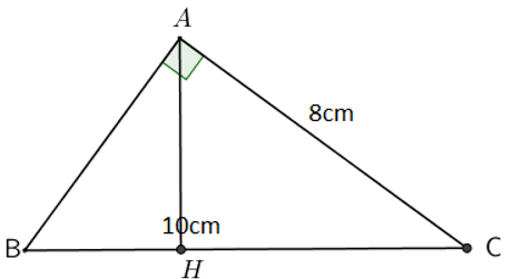 Cho tam giác ABC vuông tại A, đường cao AH \(\left( H\in BC \right)\) . Biết AC = 8cm và BC = 10 cm. Tính