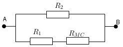 b. Cho UAB = 50V, R2 = 50Ω. Xác định vị trí con chạy C của biến trở để công suất tiêu thụ của đoạn mạch AB là 75W