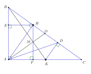 Cho tam giác \(ABC\;\left( {AB < AC} \right)\) vuông tại \(A\) có đường cao \(AH.\) Gọi \(E,\;F\) lần