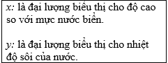Nhiệt độ sôi của nước không phải lúc nào cũng là \({100^0}C\) mà phụ thuộc vào độ cao của nơi đó so với mực nước biển. Chẳng hạn Thành phố Hồ Chí Minh có độ cao xem như ngang mực nước biển \(\left( {x = 0\,m} \right)\) thì nước có nhiệt độ sôi là \(y = {100^0}C\) nhưng ở thủ đô La Paz của Bolivia, Nam Mỹ có độ cao \(x = 3\,600\,m\) so với mực nước biển thì nhiệt độ sôi của nước là \(y = {87^0}C\). Ở độ cao trong khoảng vài \(km\), người ta thấy mối liên hệ giữa hai đại lượng này là một hàm số bậc nhất \(y = ax + b\) có đồ thị như sau: