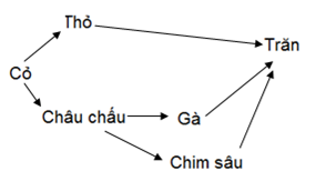 Trong một quần xã sinh vật trên cạn, châu chấu và thỏ sử dụng cỏ làm nguồn thức ăn, châu chấu là nguồn thức ăn của chim sâu và gà. Chim sâu, gà và thỏ đều là nguồn thức ăn của trăn. Khi phân tích mối quan hệ dinh dưỡng giữa các loài trong quần xã trên, phát biểu nào sau đây đúng?