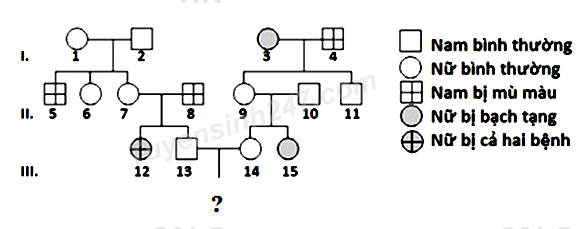 Sơ đồ phả hệ dưới đây mô tả hai bệnh di truyền ở người, bệnh bạch tạng do một gen có