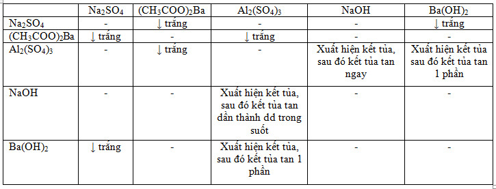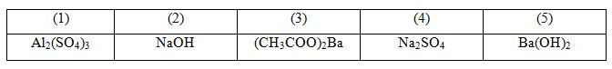2. Có 5 lọ đánh số từ (1) đến (5), mỗi lọ chứa một trong các dung dịch sau: Na2SO4, (CH3COO)2Ba, Al2(SO4)3, NaOH và Ba(OH)2. Biết: