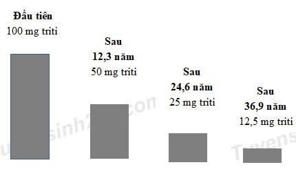 1.3 Chu kì bán hủy của một chất phóng xạ là khoảng thời gian cần thiết để một nửa lượng chất đó bị phân rã. Chu kì bán hủy của triti là 12,3 năm. Mô hình sau cho thấy sự biến đổi của lượng triti theo thời gian