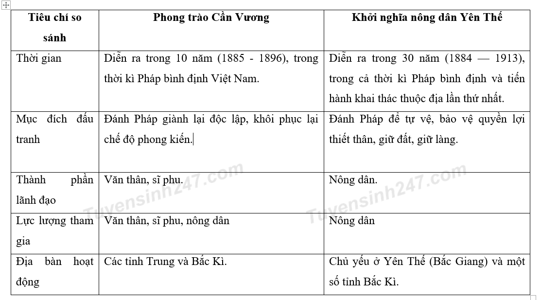 Điểm khác biệt lớn nhất giữa phong trào nông dân yên Thế với phong trào Cần vương là