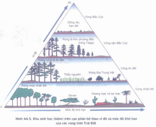 Thứ tự sắp xếp các khu sinh học (biom) trên cạn theo theo vĩ độ từ thấp đến cao là