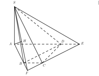 Cho hình chóp tam giác S.ABCD có đáy là nửa lục giác đều nội tiếp đường tròn đường kính