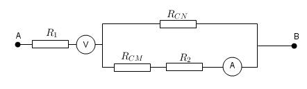 Cho mạch điện như Hình 1. Trong đó R1 = R2 = 12Ω, MN là biến trở con chạy có điện trở toàn phần là 24Ω, UAB = 6V. Coi vôn kế và ampe kế là lý tưởng.