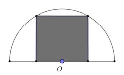 Từ một miếng tôn có hình dạng là nửa hình tròn bán kính 1m, người ta cắt ra một hình chữ nhật (phần tô đậm như hình vẽ). Phần hình chữ nhật có diện tích lớn nhất có thể cắt được là: