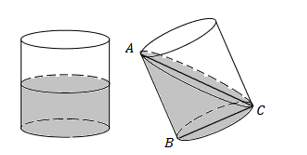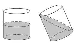Đổ nước vào một chiếc thùng hình trụ có bán kính 20cm. Nghiêng thùng sao cho mặt nước chạm