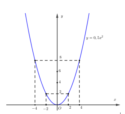 Cho hàm số \(y = 0,5.{x^2}\) có đồ thị là Parabol (P)