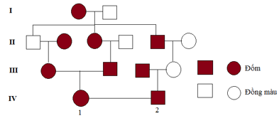 Ở thỏ, alen trội A khiến lông có màu đốm và alen lặn a làm lông đồng màu. Trong phả hệ sau đây là sơ đồ phả hệ về màu lông của thỏ. Hãy tính xác suất để IV1 và IV2 sinh 5 con trong đó 3 con đốm và 2 con đồng màu?
