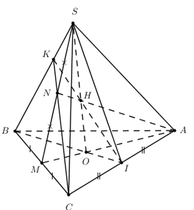 Chóp SABC. I, M, N lần lượt là trung điểm của AC, BC, SM.