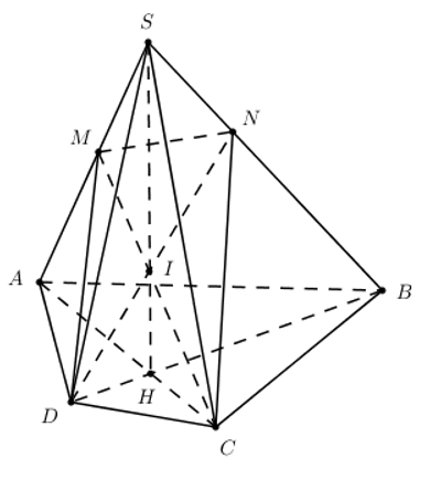 Chóp SABCD. \(AC\cap BD=H.\) Mặt phẳng (P) chứa CD cắt SA, SB tại M, N. Chứng minh CM, DN, SH đồng