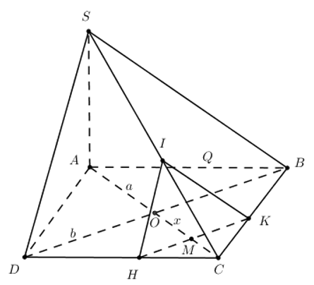 Chóp SABCD. ABCD là hình bình hành có tâm O. AC = a, BD = b. Tam giác SBD đều. M thuộc đoạn OC sao cho