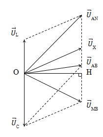 Cho dòng điện xoay chiều chạy qua đoạn mạch AB có sơ đồ như hình bên, trong đó L là cuộn cảm thuần và X là đoạn mạch xoay chiều. Khi đó, điện áp giữa hai đầu các đoạn mạch AN và MB có biểu thức lần lượt \({u_{AN}} = 30\sqrt 2 cos\omega t(V);{u_{MB}} = 40\sqrt 2 cos\left( {\omega t - \frac{\pi }{2}} \right)(V)\)Điện áp hiệu dụng giữa hai đầu đoạn mạch AB có giá trị nhỏ nhất là