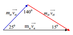 \(_0^1n + _3^6Li \to _1^3H + \alpha \). Biết hạt \(\alpha \)và hạt nhân \(_1^3H\)bay ra theo các hướng hợp với hướng tới của nơtronnhững góc tương ứng bằng \(\theta \) = 25° và \(\varphi \)= 15°. Lấy tỉ số giữa các khối lượng hạt nhân bằng tỉ số giữa các số khối của chúng. Bỏ qua bức xạ gamma. Phản ứng trên