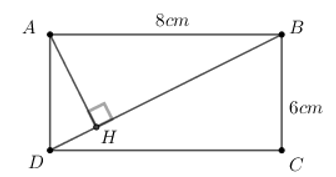 Cho hình chữ nhật ABCD có AB = 8cm, BC = 6cm .Vẽ đường cao AH của \(\Delta \)ADB.