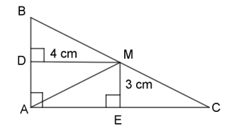 b) Cho EM = 3 cm, MD = 4 cm. Tính diện tích tam giác ABC.