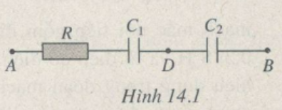 Cho mạch gồm điện trở \(R = 30\Omega \) nối tiếp với tu điên \({C_1} = \frac{1}{{3000\pi }};{\rm{ }}{C_2} = \frac{1}{{1000\pi }}\) (Hình 14.1) nối tiếp nhau, điện áp tức thời ở hai đầu đoạn mạch là \(u = 100\sqrt 2 cos100\pi t(V).\)