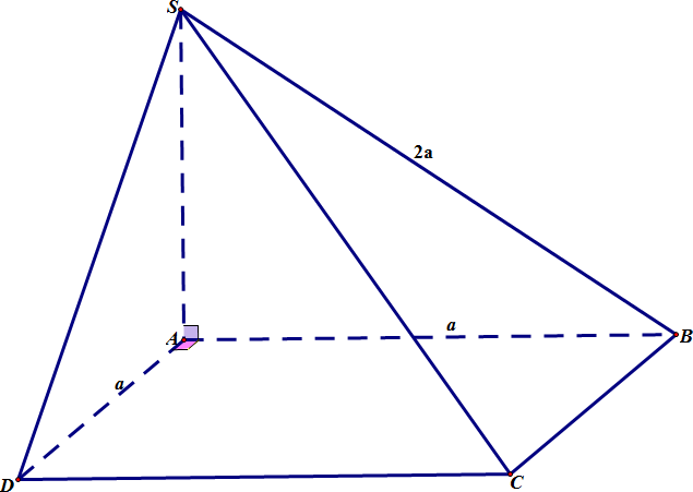 Cho hình chóp \(S.ABCD\) có đáy là hình vuông cạnh a, SA vuông góc với mặt phẳng đáy và \(SB =