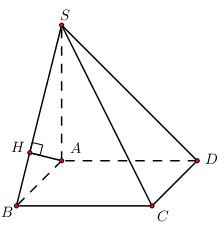 Cho hình chóp S.ABCD có đáy là hình vuông cạnh \(\sqrt 3 a\) , SA vuông góc với mặt phẳng đáy và \(SA = a\). Khoảng cách từ A đến mặt phẳng (SBC) bằng