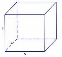 - Gọi chiều rộng, chiều dài, chiều cao của bể lần lượt là \(x,2x,y\)